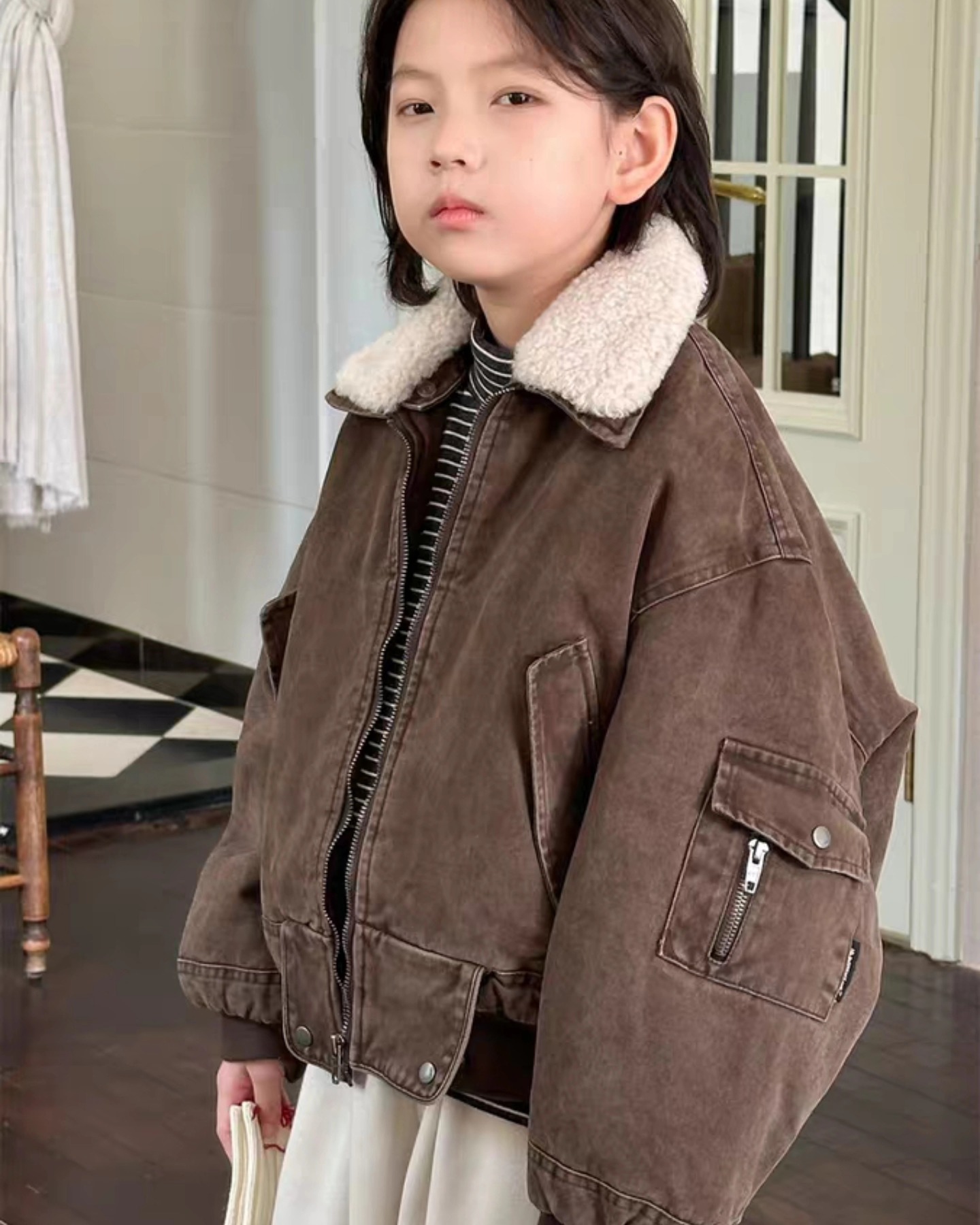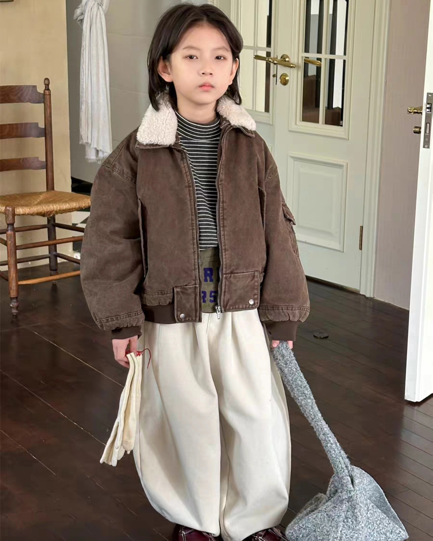 K2026 เสื้อบอมเบอยีนส์ คอเสื้อถอดขนได้