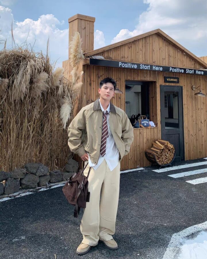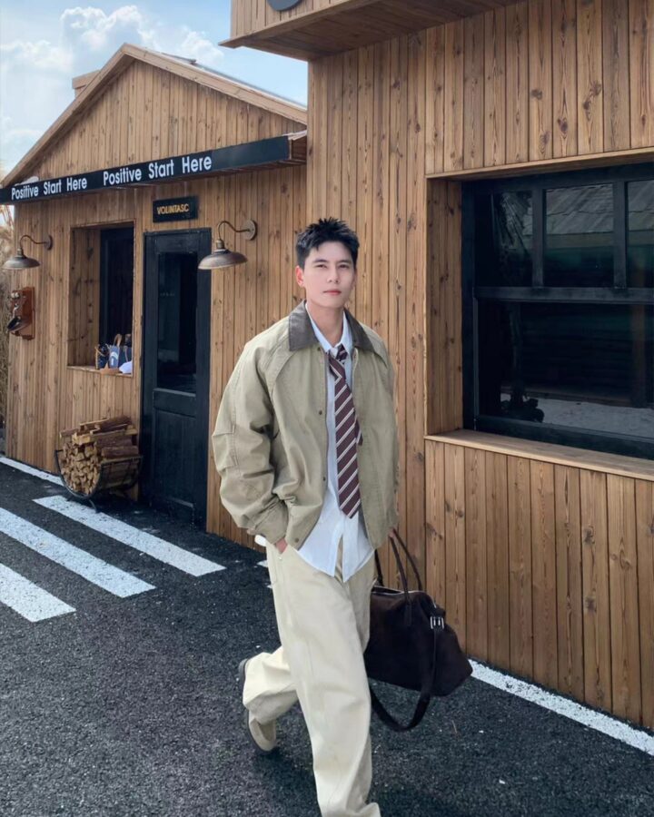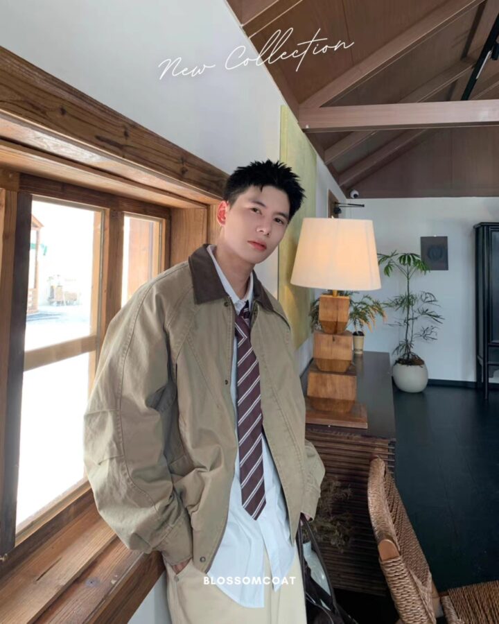 M3097 เสื้อแจคเกตยีนคอปกหนัง