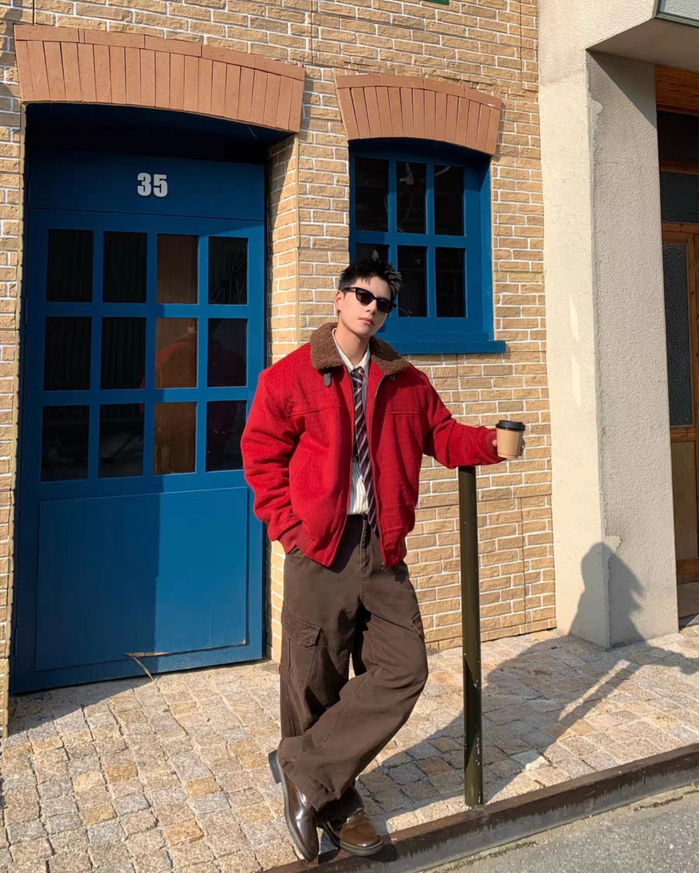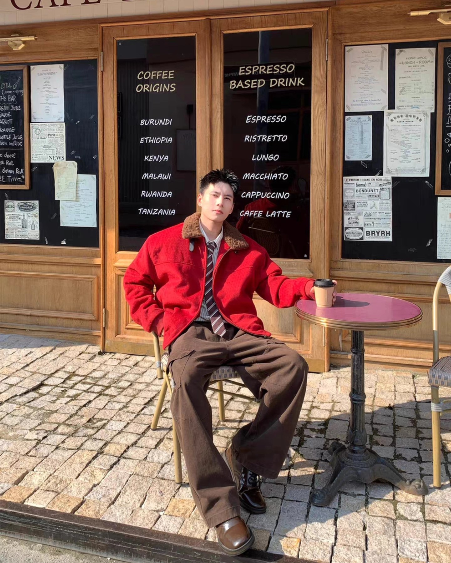 M3102 เสื้อแจคเกตผ้าขน คอปกน้ำตาล