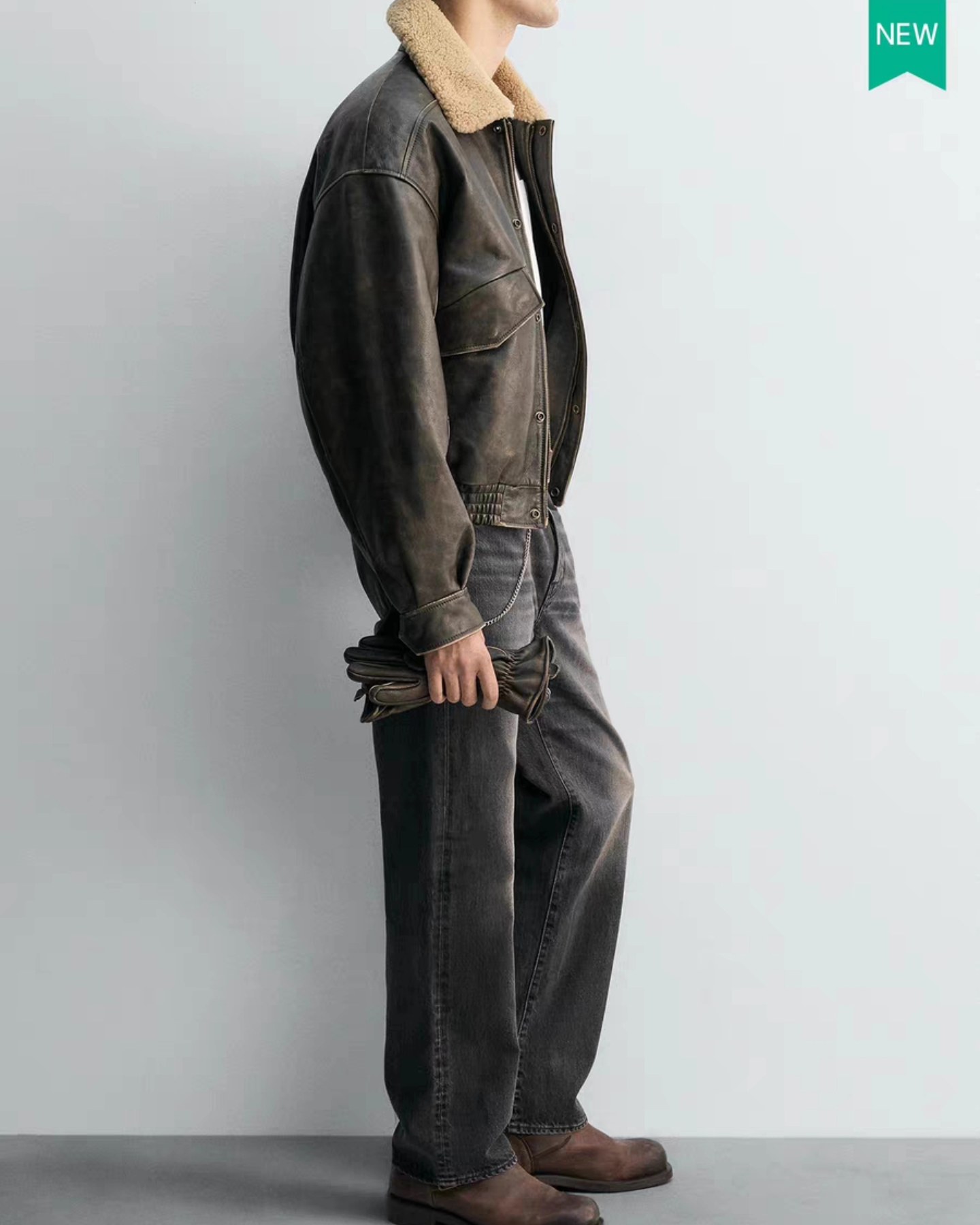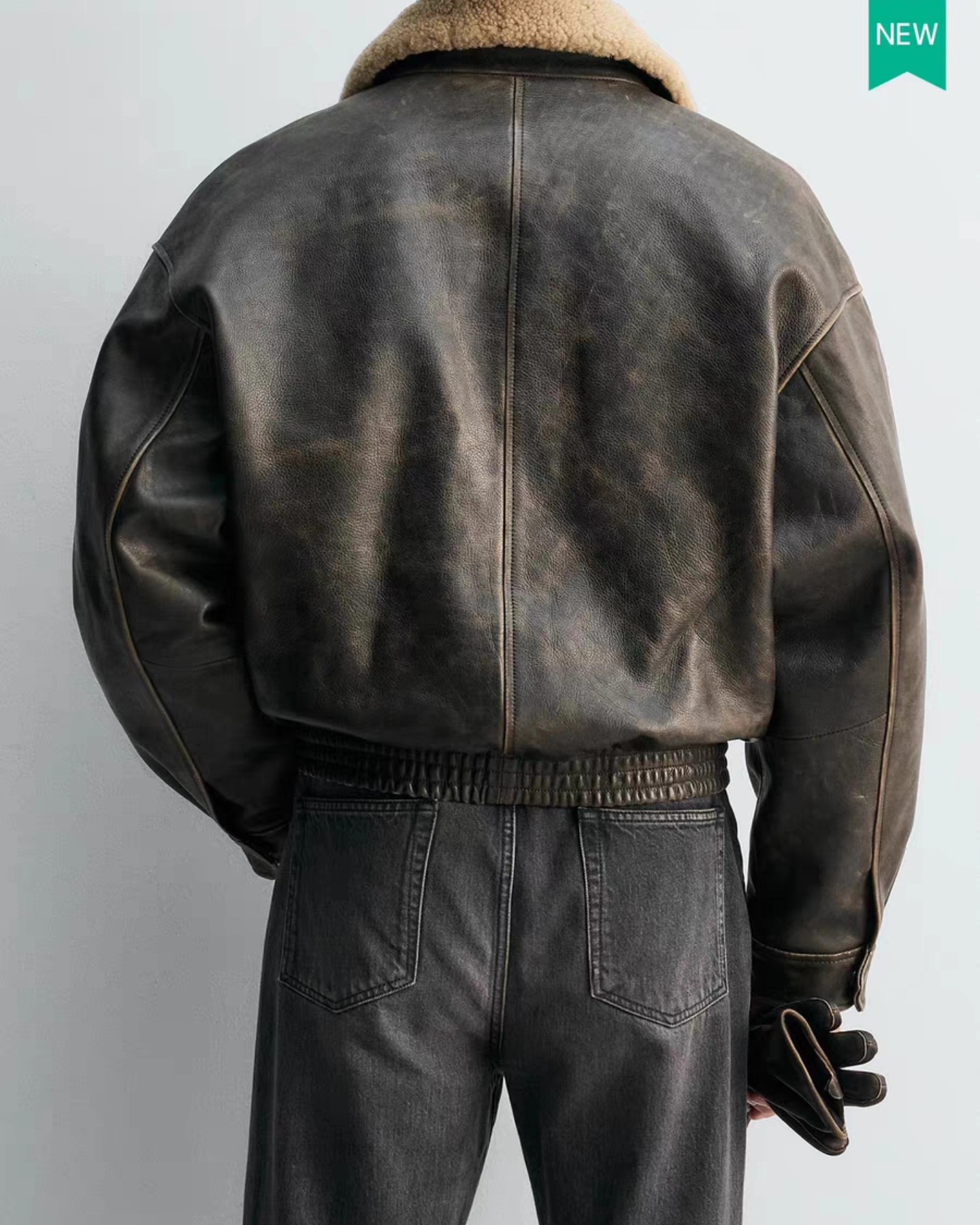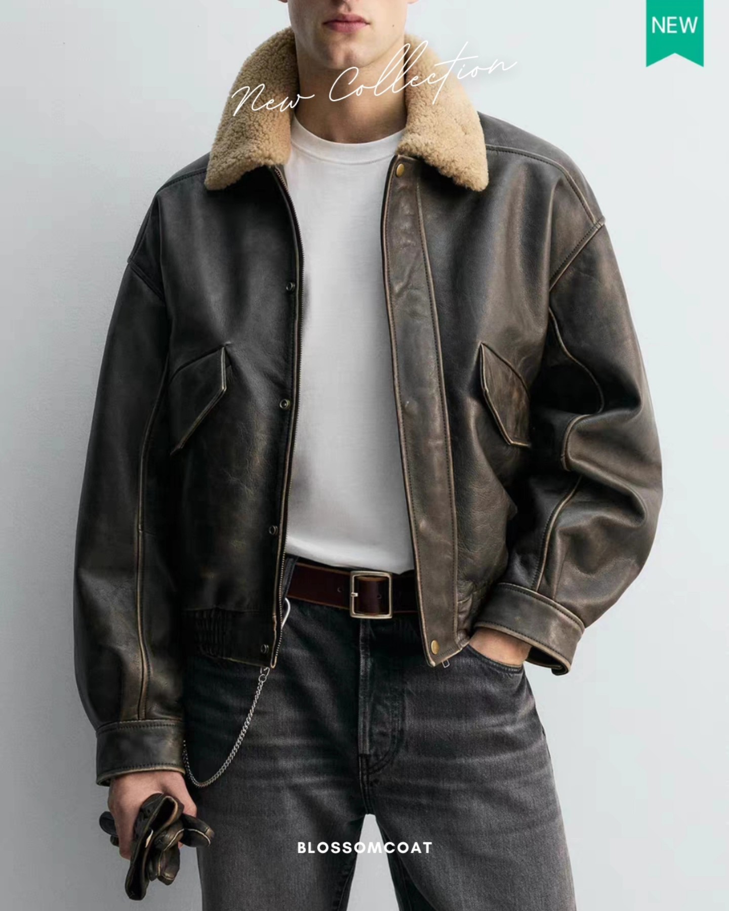 M3117 เสื้อแจคเกตหนังคอปกขนแกะ ไม่บุขน