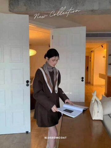 B1296 โค้ทสั้นทรงเดรส+ผ้าพันคอ