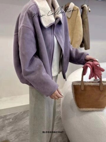 B3235 เสื้อแจคเกตหนังกลับพาสเทล ใส่ได้ 2 ด้าน