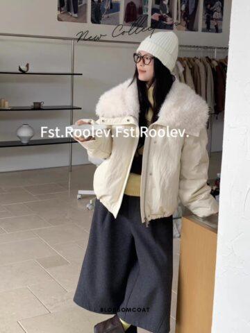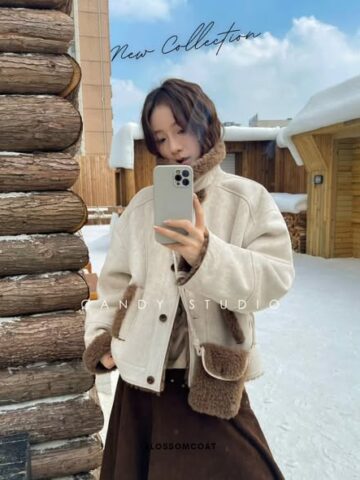 B1305 โค้ทหนังกลับบุขนคอตั้งเล็กน้อย